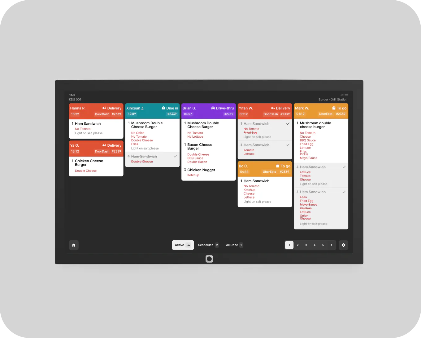 Integrated with your POS and Kiosk to consolidate and track orders, online and in store. Keep your kitchen organized and stay on top of tickets in real time.
