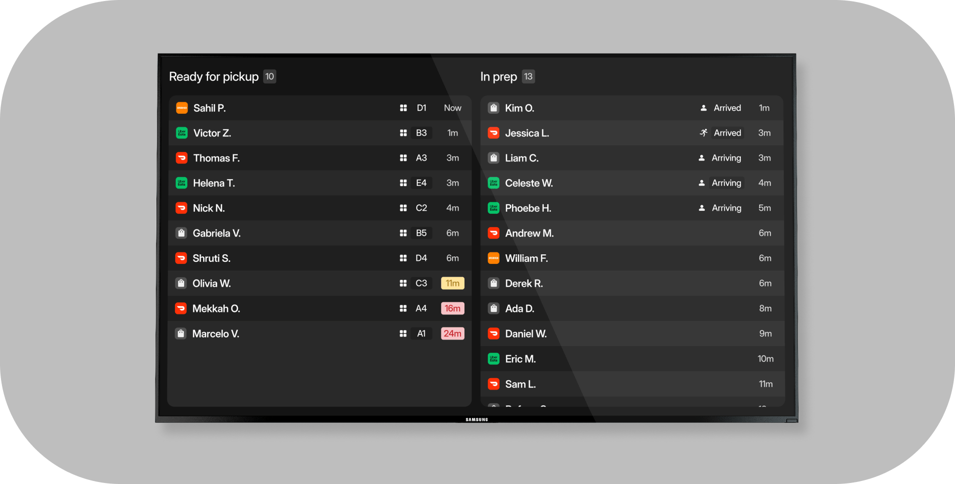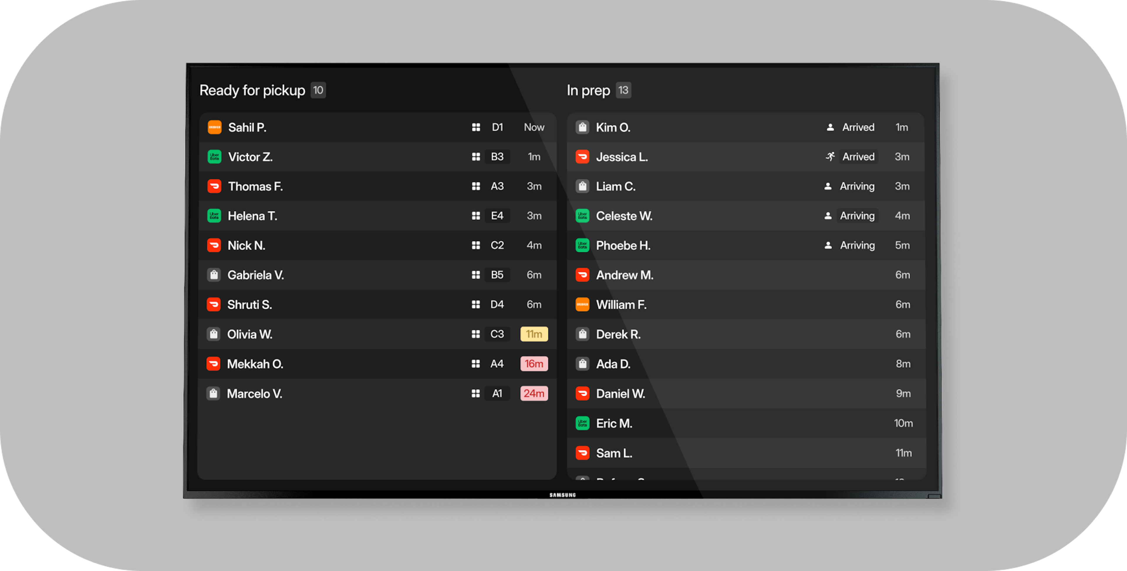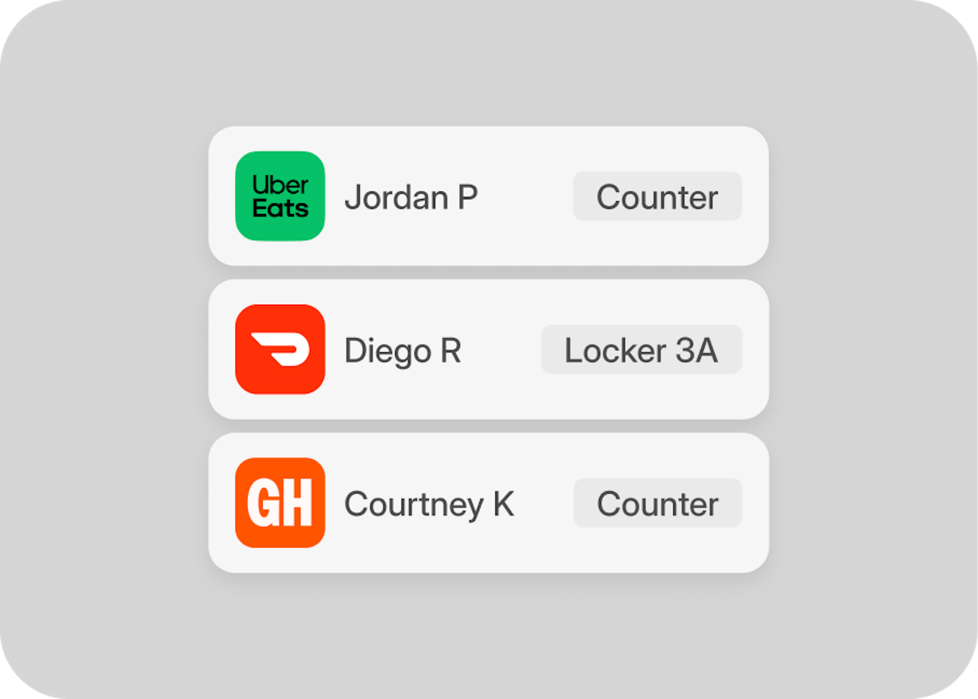 Display a feed of each courier as they come in to pick up orders so it’s clear who needs what and no one is left lingering by the entrance.