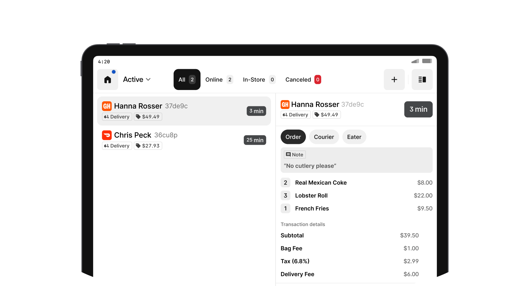 Keep customers and couriers in the know on order status to prevent overcrowding and make handing off orders as smooth as possible.